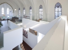 Дизайнери Zecc Architects внесли мінімальну кількість змін і постаралися зберегти оригінальну дерев'яну підлогу, розкішні вікна з мозаїкою, старі дерев'яні двері, колони, арки. Навіть церковні лави знайшли нове життя і використовуються в їдальні. Важливо відзначити, що всі внесені зміни суттєво не позначилися на внутрішньому просторі церкви, і приміщення завжди може бути переобладнано для інших цілей і навіть може знову використовуватися за призначенням.