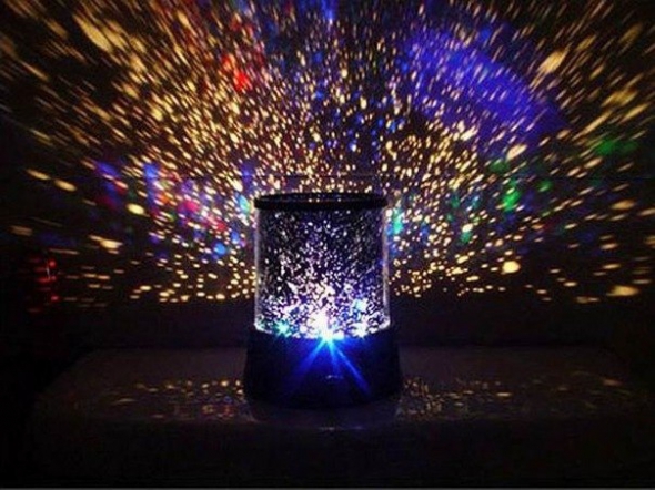 Пристрій проектує на стелю зображення зоряного неба. Живиться від пальчикових батарейок. Має кілька режимів. Вартість проектора 130 гривень.