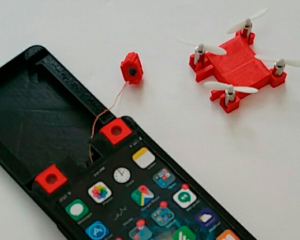 Телефон оснащений змінною камерою з довгим кабелем, щоб закріпити камеру на безпілотник і дати йому можливість отримувати живлення і команди з смартфона.