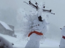 За допомогою дистанційного пульта дрон відправили на ліквідацію сніговиків, бурульок і ялинок. Тим не менш, напад на повітряну кулю закінчився для пристрою невдачею.