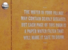 "Все, що потрібно зробити, - вирвати одну зі сторінок, помістити її в пристрій для фільтру та налити туди воду з будь-якого джерела, чи то річки, чи криниці і т.і. В результаті отримуємо чисту воду та мертві бактерії", - каже Тері Данкович.