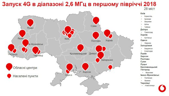 Мобільні оператори отримали ліцензії на частоту 2600 МГц. Вона дає невеликий радіус покриття. Перші зони 4G з'являться у Львові, Києві, Дніпрі, Харкові, Одесі, Ужгороді, Вінниці, Хмельницькому, Тернополі.