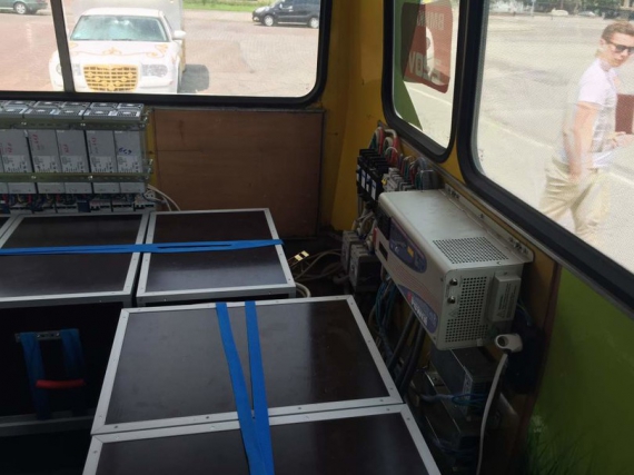 Він виготовлений на базі автобуса "Богдан", де замість двигуна внутрішнього згоряння встановили електричний, а замість паливного бака встановили акумуляторні батареї.