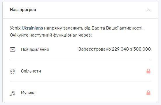Наступний на черзі — розділ "Повідомлення". Його відкриють після того, як до Ukrainians зареєструється ще 70 тис. осіб.