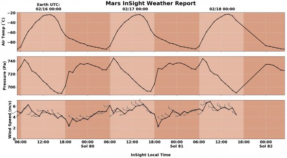 Щоб електроніка та інші "нутрощі" зонда не пошкодилися через такі температурні перепади, під обшивкою InSight автоматично підтримується певний мікроклімат. Завдяки цьому, тепер щодня, майже в режимі реального часу можна відстежувати температуру, атмосферний тиск і швидкість вітру на Марсі.