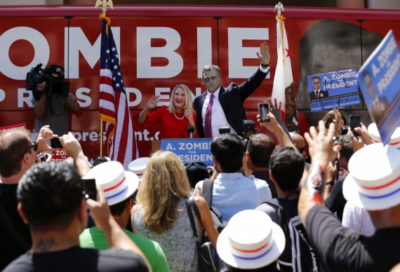 У США в передвиборних перегонах на посаду глави держави візьме участь зомбі. А саме якийсь А. Зомбі, що зареєстрував свою кандидатуру в понеділок в Вестфілд Хортон Плаза в місті Сан-Дієго.