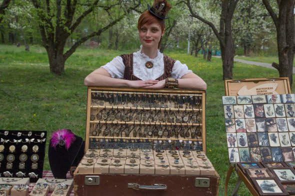 "Цей напрям називається стимпанк. Він вміщує різновид - "часовий" панк. Зайнятися ним порадила подруга, - розповідає Ірина Проскуріна. - Спочатку експериментувала і збирала прості вироби із шестерень. Діставала їх із радянських механічних будильників та наручних годинників. Потім почала використовувати ювелірну смолу. Вона рідка і прозора, як вода. Коли застигає - дуже нагадує скло. Нею скріпляю деталі і покриваю готову прикрасу. Все починалося як хобі. Але коли побачила, що люди цікавляться і готові купувати мої роботи, перетворила його у спосіб заробітку. Це дозволило повністю себе забезпечувати".