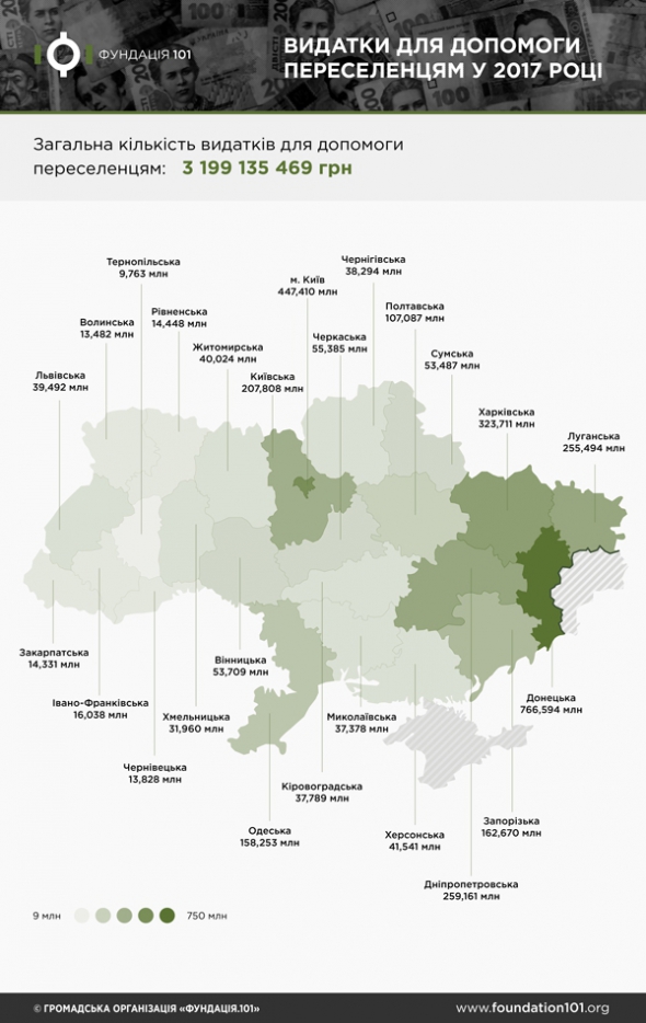 3 млрд грн направлять із державного бюджету України на допомогу переселенцям. Це на 309 млн грн більше, ніж торік.