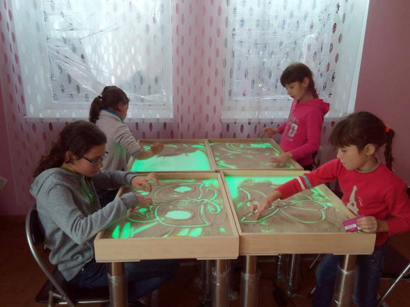 Група батьків-переселенців у Смілі на Черкащині створили арт-студію "Долоньки" для занять з дітьми. Завдяки грантам від громадських організацій, на 50 тисяч грн придбали спеціальні столи для пісочної анімації, дошку, столи зі стільцями, швейну машинку, праску. Про це Gazeta.ua розповідає Карина Манько з Кадіївки (колишній Стаханов), засновниця ініціативи.