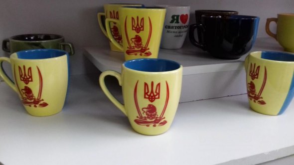 Найбільш ходова продукція - патріотична чашка в жовто-синьому кольорі з тризубом. Випускати її стали одразу після окупації Слов'янська і відновлення виробництва. Гроші, виручені від продажу, йдуть на допомогу іншим переселенцям та бійцям АТО.