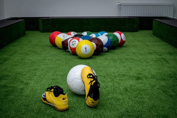 Снукболл – це спортивна гра, коли футбольними м'ячами грають за правилами більярду