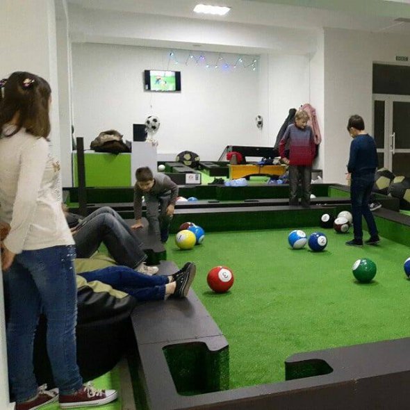 "Моніторили, щоб можна було цікавого робити для дітей. У мене сину 10 років, і йому вже не цікаво у розважальних центрах. Пострибає на батутах 15 хвилин і все. Снукболл – це спортивна гра, коли футбольними м'ячами грають за правилами більярду. Чудовий спосіб весело провести час, розвинути логічне мислення, уяву, відпрацювати точність удару, - розповідає Олександр, - Обладнання купляли у львівської компанії. Щоб вписатись у строки, працювали вдень і вночі".