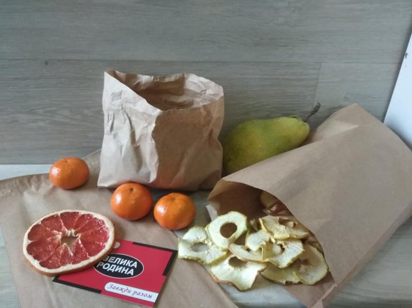 "Пастила без цукру, в основі яблучне пюре та сік. Змішуємо інгредієнти та виливаємо на піддон, пастила сушиться та отримуємо такий собі фруктовий лаваш. Експериментуємо зі смаками. Щоб отримати ідеальний продукт треба багато часу та сил, — зазначає Андрій, — Взимку сушимо яблука, грушу, хурму та цитрусові. Влітку – робимо полуничні та інші чипси. На кожну партію треба від 10 до 20 годин, в залежності від товщини й кількості піддонів. На це витрачаємо світла багато. А продукти ще треба мити, упаковувати. Тому й отримуємо ціну в 500-600 гривень. Не можна порівнювати з китайським бананом чи курагою за 150 грн, що сушать прискореним методом, використовуючи хімічні речовини".