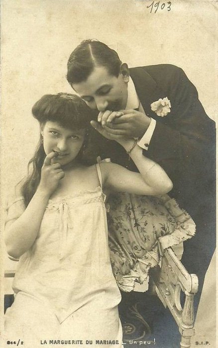 7. Пестощі не завжди були в пошані. "Якщо він намагається поцілувати її в губи, вона має злегка повернути голову, щоб поцілунок невинним чином припав у щоку. Якщо він намагається поцілувати руку, слід стиснути її в кулак".