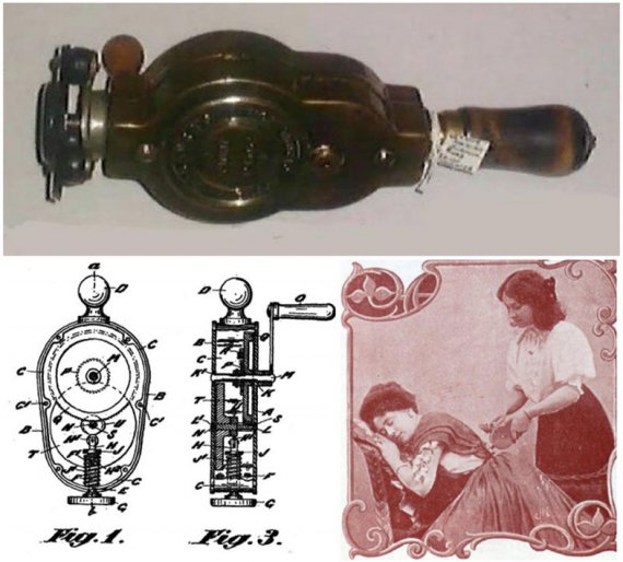 Одним з найпопулярніших був "Кров'яний розподільник". Його винайшли у Великобританії. Його випускали до 1920-х років. Вібруючий диск обертався ручкою. Машинку можна було розкрутити до 5000 оборотів на хвилину. Виробник заявляв, що "розподільник" бореться із застоями крові. Однак жінки використовували його по-своєму.
