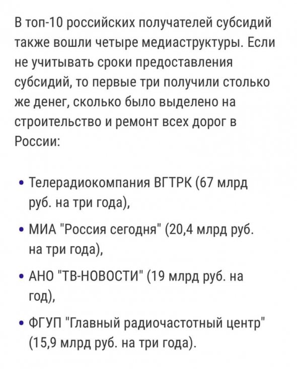 У Facebook вона запропонувала звернути увагу на бюджет, який Росія виділяє на свої канали. Головні російські телеканали отримали з державного бюджету РФ 122 млрд рублів, майже $2 млрд за курсом на 30 липня 2019-го.
