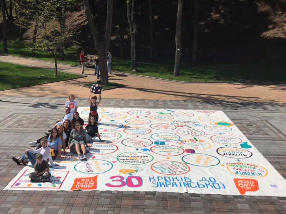 "У парку Володимирська гірка розгорнули велику настільну гру, де кожен хід - це крок до переходу на українську мову, як-от "читайте книги українською", "ґуґліть українською", "пишіть українською в соцмережах" та інше", - йдеться в повідомленні.