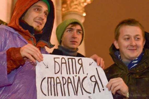Прикметно, що близько третини гасел для євромайданів написані англійською мовою - українці звертаються до європейської спільноти зрозумілою їй мовою. Плакати, автори яких звертаються до північних сусідів, складені російською. Вони закликають російського президента: "Путин, если любишь - отпусти", а також цитують російського класика Михайла Лєрмонтова: "Прощай, немытая Россия".