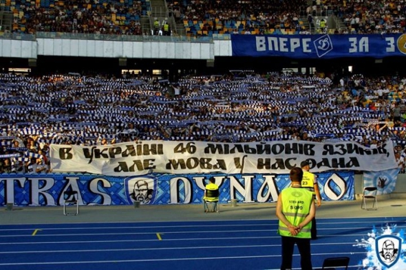 Так у липні 2012 року підтримка київського "Динамо" відреагувала на закон "Про засади державної мовної політики" авторства представників Партії регіонів.