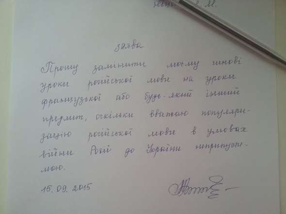 "Уррррррра! Дякую всім, хто мене підтримував, обурювався зі мною, вболівав! Мій син НЕ ВЧИТИМЕ РОСІЙСЬКУ мову! Він вивчатиме французьку, - написала днями користувачка мережі Facebook Лариса Ніцой. - Спочатку в класі я була така одна дивна, хто хотів замість російської вивчати якийсь інший предмет. Мені було важко. Була війнушка і психологічний тиск (таке в нашій школі вперше; російська розширює горизонти; треба знати мову ворога; я вчила і нічого зі мною не сталося; пожалійте класного керівника, її звільнять; уже пізно, це треба було робити до 1 вересня; все затверджено відділом освіти ...) Ми не здалися. Ми були чемні і ввічливі, але наполегливі. Нікого не звільнили. І нам, в індивідуальному порядку, на відміну від усього класу, дозволили займатися французькою. У класі на нас подивилися - і нас таких стало на всю школу двоє! Потім троє!.. Сьогодні 16.09.16 наш клас поділили на дві групи: російську і французьку! Дякую опонентам, ви загартовували витримку! Дякую всім однодумцям! Якби не Ви, було б важче", - написала мама школяра.