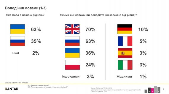 Якщо у травні 2014-го таку підтримку демонструють третина респондентів - 34%, то у травні 2019-го - 65%. Водночас значуще зменшилася частка тих, хто вважає, що і українська, і російська мови мають бути державними мовами в Україні, - 18%, і тих, хто позитивно ставиться до надання російській мові офіційного статусу у деяких регіонах України - 15%. Про це повідомляє Kantar.