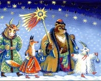 Ми якраз не співали, - і зайшло двоє підхмелених мужичків. Один із них, який більш підпитий, почав пильно прислухатися до нашого україномовного гомону. Наче зараз від нас він почує щось сакральне і не хоче цього проґавити. Наш вертеп гучно завів якусь колядку, - і мужичок поступово усім серцем повернувся до нас. Споглядає, вслухається. Він був украй розчулений: приголомшено дивився уже зволоженими очима, обличчя почало застигати в судомній гримасі ридання. Ми всі трошки зніяковіли, але співати почали ще дужче. А наш відданий шанувальник вже заходився мене обіймати і всім розпихати стиснені в жменях гроші. При цьому він щось бурмотів: "Боже, ви такі гарні… як же ви гарно… це як у мене в селі, коли малий…". І як заключний жест, мов під завісу вистави, чоловік упав на коліна й почав витягати з усіх кишень і розкидати перед нами свої купюри разом із гаманцем.