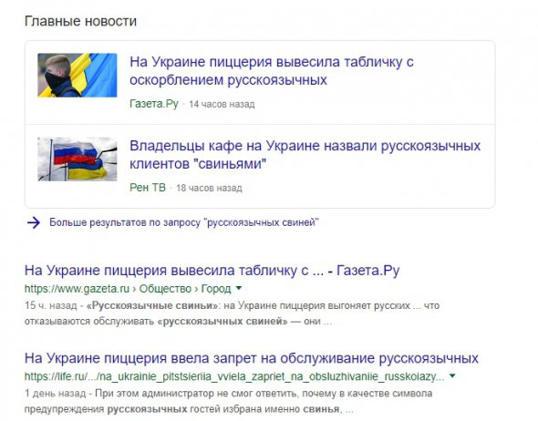 Почали писати, що українці не хочуть бачити в місцях громадського харчування "російськомовних свиней". Публікації вийшли з подібними заголовками.