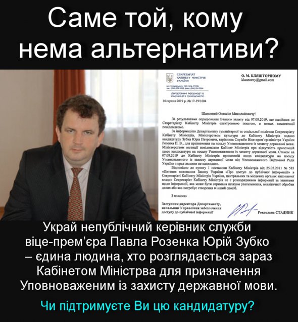 Керівника служби віце-прем'єра Павла Розенка Юрія Зубка розглядають на посаду уповноваженого із захисту державної мови.