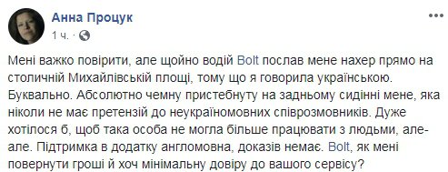 Потерпіла Анна Процук написала про це у соціальних мережах.