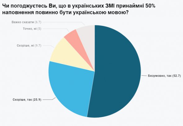 У тому, що українська мова є важливим атрибутом незалежності, згодні 81% громадян. Приблизно стільки ж погоджуються, що в українських ЗМІ принаймні половина наповнення має бути українською мовою.