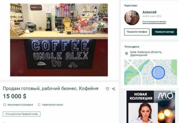 Також, за інформацією "33 каналу", на платформі OLX помітили оголошення про продаж цієї кав'ярні за $15 тис. Нині воно там відсутнє, а кав'ярня продовжує свою роботу.