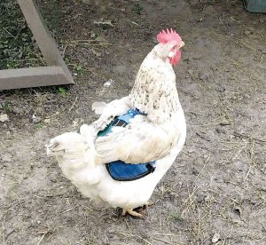 Також залисини виникають від стрибків півня на курку. Для захисту птиці господар надіває на них накладки із старих джинсів.