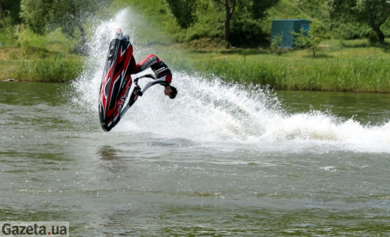 Після цього на озері біля набережної стартували змагання з фрістайлу на гідроциклах. За словами одного з учасників Олега Мазура, виступ був доволі складний.