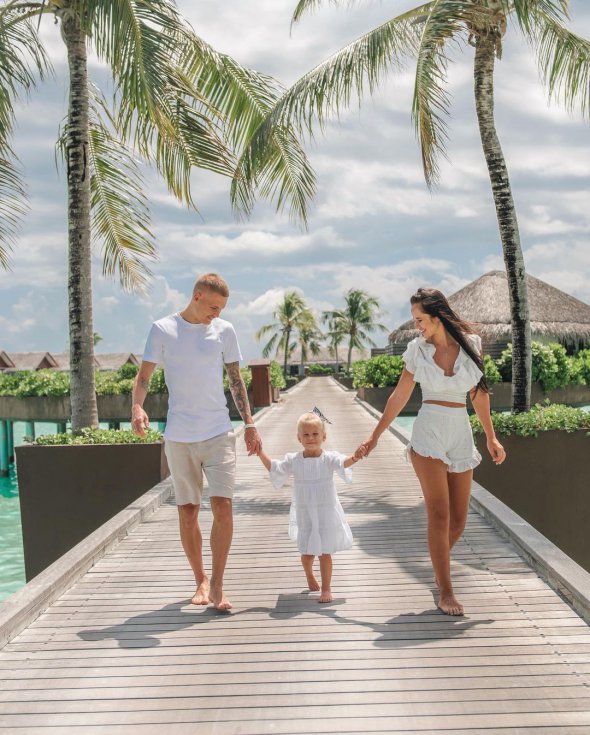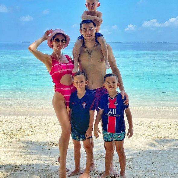 Захисник "Динамо" Брест Євген Хачеріді разом із дітьми на Мальдівах.