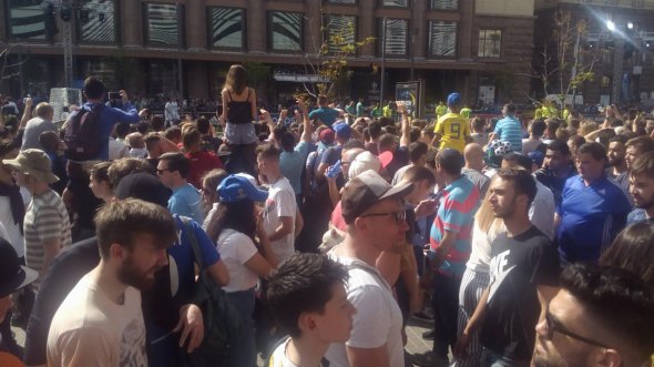 Довелося тіснитися з фанатами, яких зібралася повна площа.