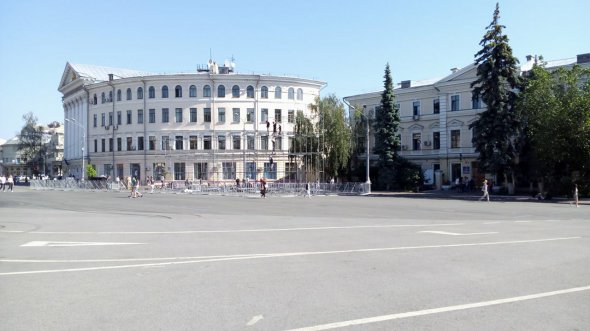 За один день була зроблена велика робота і вже в п'ятницю між Гостинним двором і Кияєво-Могилянською академію, де будували екран, можна було побачити помітні зміни.