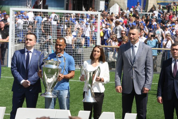Відкрив фан-зону мер столиці Віталій Кличко, головний антикорупціонер країни, віце-президент ФФУ Назар Холодницький і легендарний бразильський футболіст Кафу.