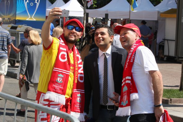 По ходу зустрів двох уболівальників, яких можна було точно ідентифікувати: один у футболці "Ліверпуля", другий - із шаликом англійського клубу. Підходжу до другого, розмовляє з товаришем, говорить російською: "Ми лише прилетіли, поки що роздивляємося. Скільки заплатили за готель? Зупинилися у друзів, тож на цьому зекономили".