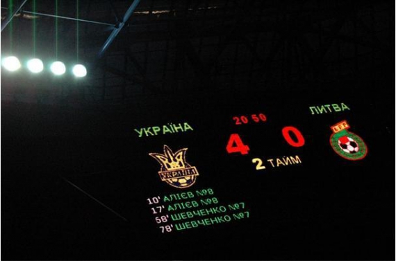 Протягом всієї гри господарі поля володіли беззаперечною перевагою, перетворивши її у розгром прибалтів з рахунком 4-0. Вже на 11 хвилині рахунок у своєму фірмовому стилі - зі штрафного - відкрив Олександр Алієв, він же подвоїв перевагу українців через 6 хвилин після філігранної передачі Андрія Шевченка. У другому таймі вже сам капітан двічі вразив ворота збірної Литви - спочатку з пенальті на 69 хвилині, а через 10 хвилин увірвався в штрафну і завдав контрольний постріл по воротах гостей.