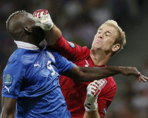 В середині тайму цілком міг відзначитися Маріо Балотеллі. Піймавши захисників збірної Англії на невдалу спробу створити штучний офсайд, він втік на рандеву з Хартом, але Джон Террі встиг повернутися назад і блокував постріл форварда "Манчестер Сіті". Схибив Балотеллі і на 32-й хвилині, коли отримав шикарну передачу від Антоніо Кассано.