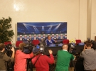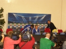 У зал заходять капітан "Динамо" Олександр Шовковський та прес-аташе клубу Олексій Семененко.