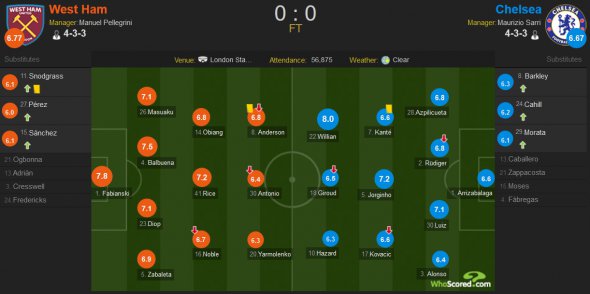 WhoScored оцінив Ярмоленко в 6,3 бала. Це найгірший показник серед гравців, що вийшли в стартовому складі. Менше лише у Роберта Снодграсса (6,1), Карлоса Санчеса (6,1) і Лукаса Переса (6,0), які вийшли на заміну.