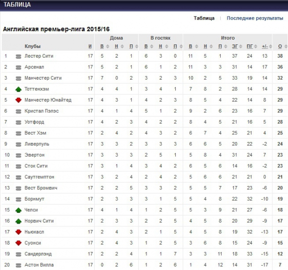 "Арсенал" набрав 36 очок і посідає друге місце в чемпіонаті Англії, відстаючи на 2 бали від лідера турніру "Лестера". "Манчестер Сіті" з 32 очками йде третім, поступаючись "лисицям" вже на цілих шість пунктів.