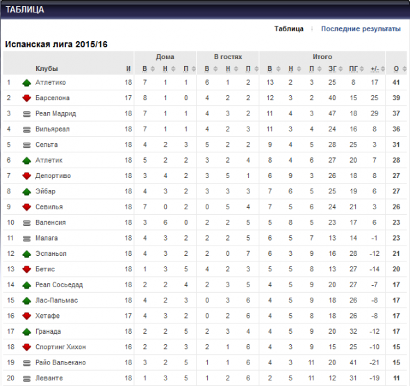 "Атлетико" набрав 41 очко і став лідером чемпіонату Іспанії, обійшовши "Барселону" (39), в якої матч у запасі. "Реал" з 37 очками займає третє місце. Команда Рафаеля Бенітеса поділила очки з "Валенсією" - 2:2.