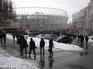 До відновлення чемпіонату "Олімпійський" прикрасили величезними фотографіями. На одній зображені футболісти збірної України, на іншій - "динамівці".