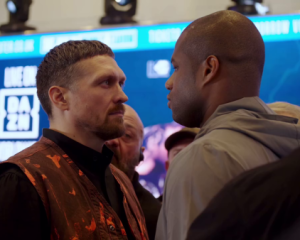 Боксери зустрілися на стадіоні "Вемблі" в Лондоні та зазирнули один одному в очі. Під час дуелі поглядів Дюбуа штовхнув українця. У відповідь Усик зайняв бійцівську стійку, після чого британець одразу ж позадкував.