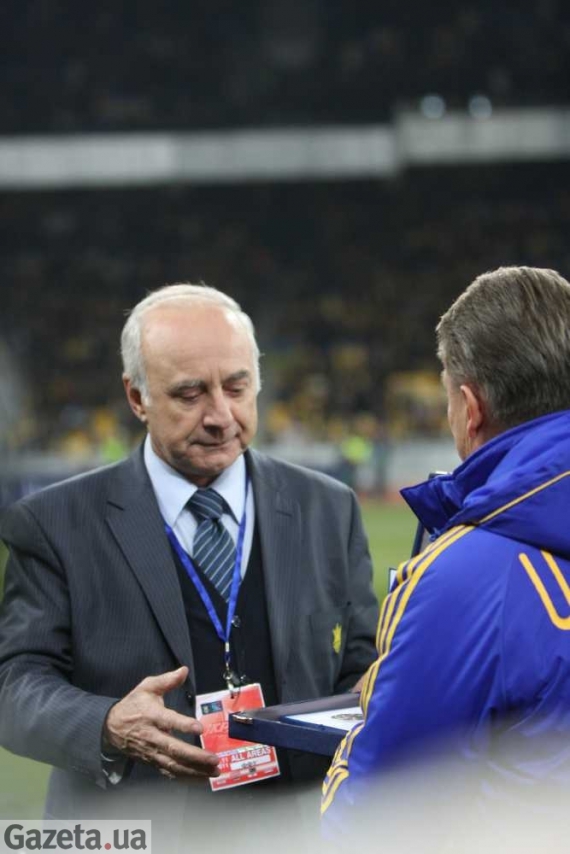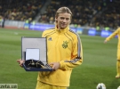 Наставник національної збірної України Олег Блохін, капітан та нападаючий Андрій Шевченко, віце-капітан та півзахисник Анатолій Тимощук отримали нагороди перед початком товариського матчу проти Німеччини. Це сталося у п'ятницю, 11 листопада, на НСК "Олімпійський".