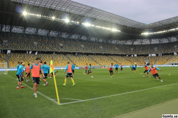 Напередодні наставники команд Михайло Фоменко та Олександр Хацкевич зустрілися з журналістами, а футболісти провели тренування на полі "Арени Львів".