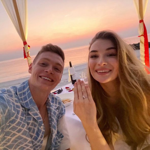 "Усе тільки починається" - підписав фото в Instagram футболіст, де позує разом із нареченою, яка наділа на палець каблучку.