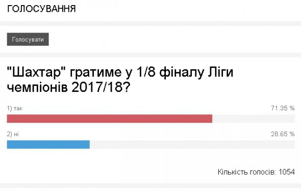 Але більшість читачів Gazeta.ua вірять і бачать "Шахтар" саме у плей-оф Ліги Чемпіонів. Таких набралося більше 71 % з тих, хто брав участь у нашому опитуванні. Тих, хто сумнівається, трохи більше 28 %.